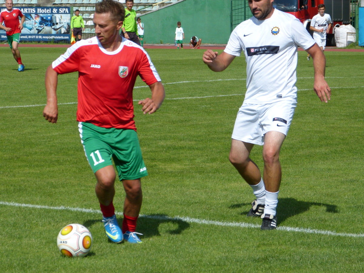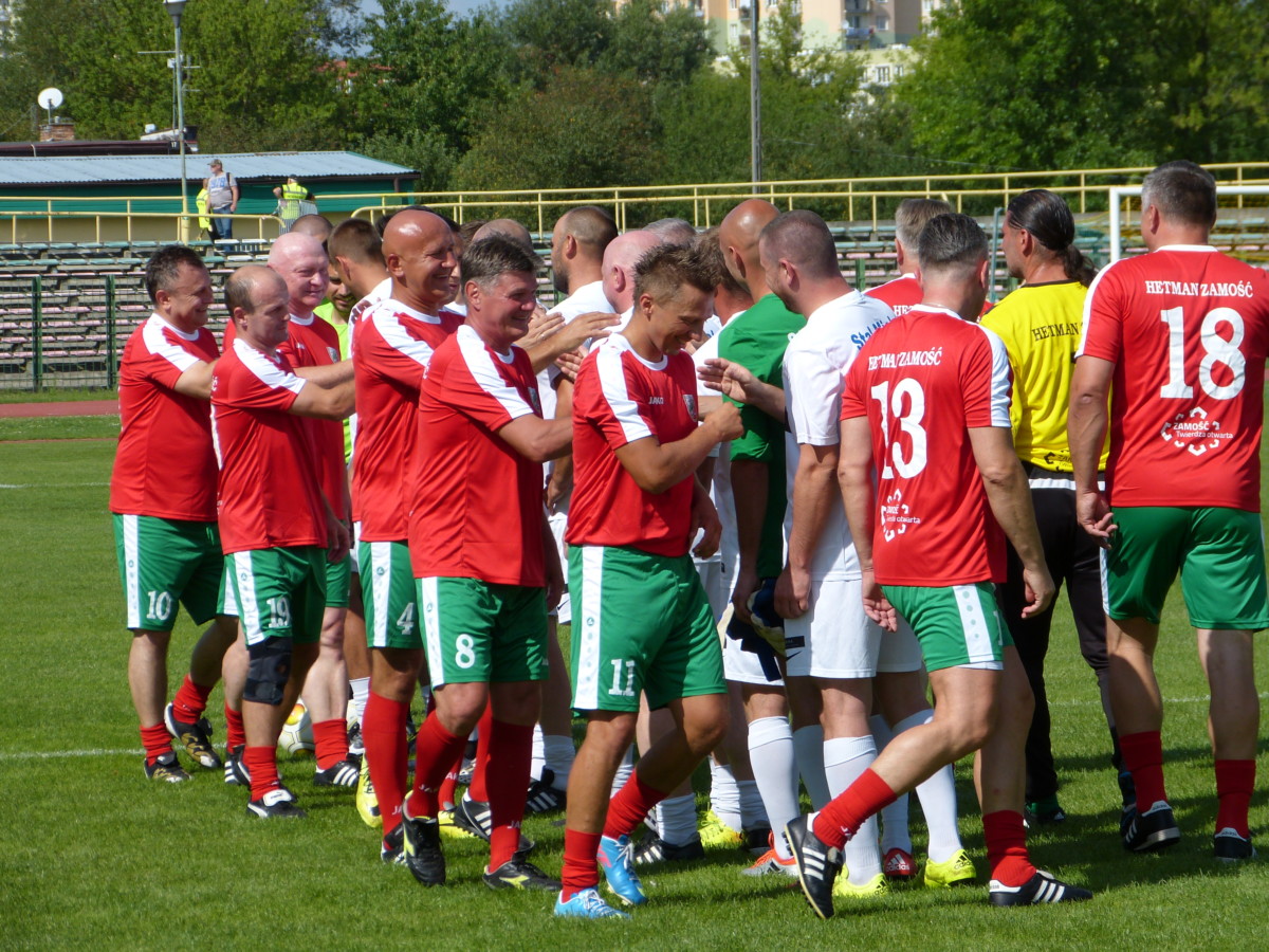 Zapowiadało się komicznie. W końcu na boisko wyszli panowie, którym przybyło nie tylko lat, ale także kilogramów. W dodatku bieganiu po boisku nie sprzyjał upał. – Chyba już nie wstanę – żartował Marek Pogódź, gdy drużyna Hetmana Zamość ustawiła się do pamiątkowej fotografii. Dobry humor nie opuszczał zamojskich piłkarzy ani na chwilę. – Poproszę już o zmianę – śmiał się Marek Pogódź w trakcie przedmeczowej rozgrzewki.